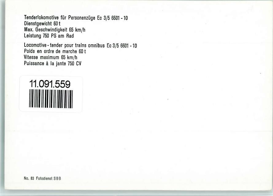 Tenderlokomotive für Personenzüge Ec 4/5 6601-10