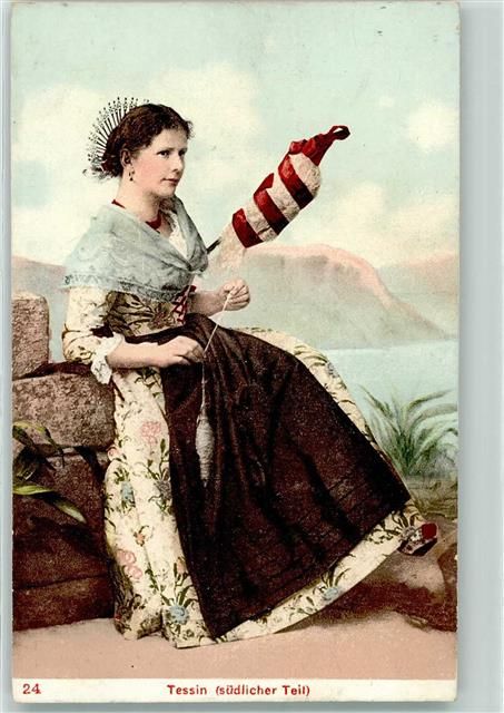 Tessiner Trachtenfrau am spinnen Südlicher Teil