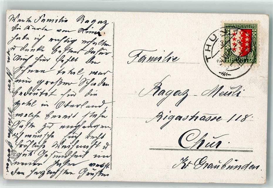 Thun, Einzelfrankatur Pro Juventute 1921 10 Rappen