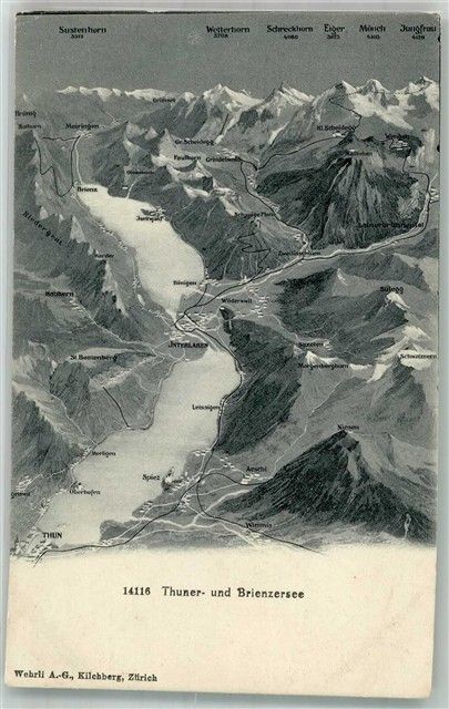 Thun Vogelschau Thunersee Brienzersee Motiv Schweiz Foto AK