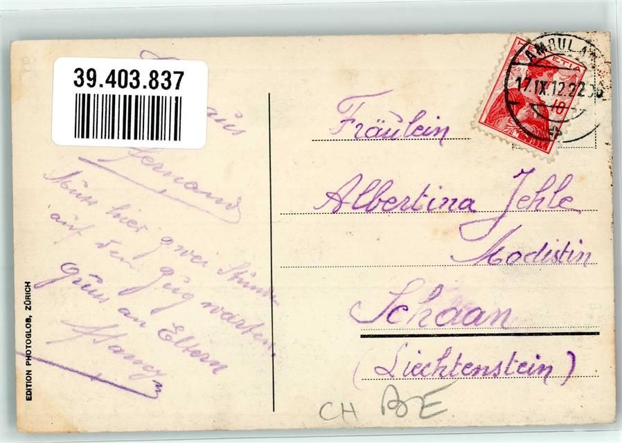 Tödi 1912 - Uelialp Bahnpost Ambulant