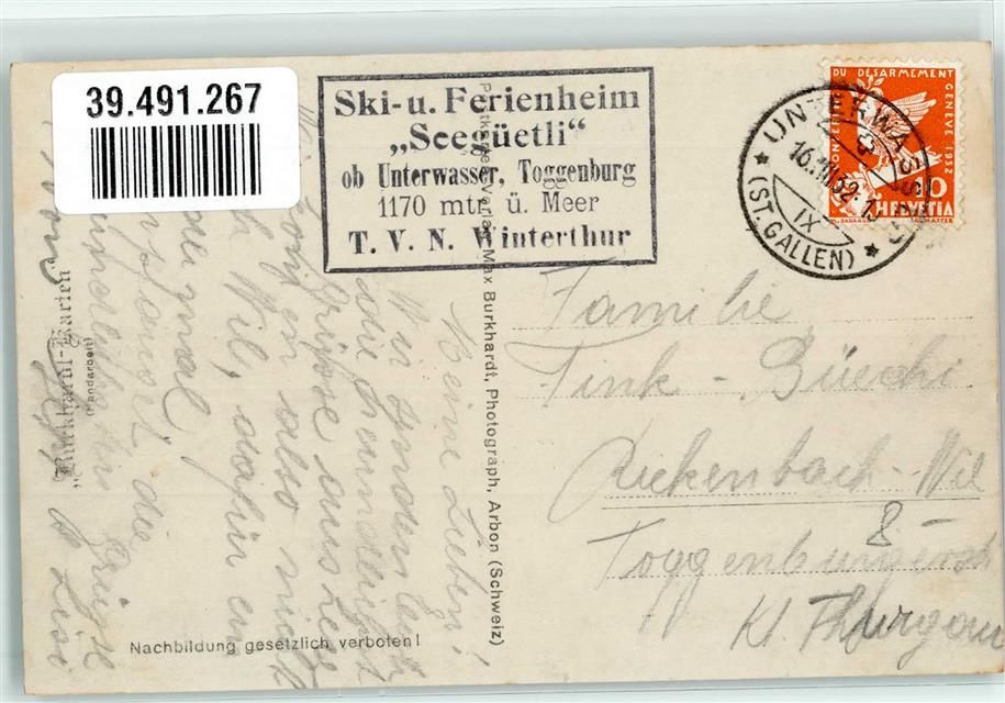 Toggenburg, Verlag u. Fotograf Max Burkhardt