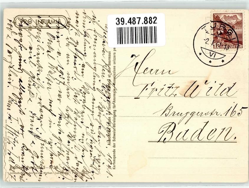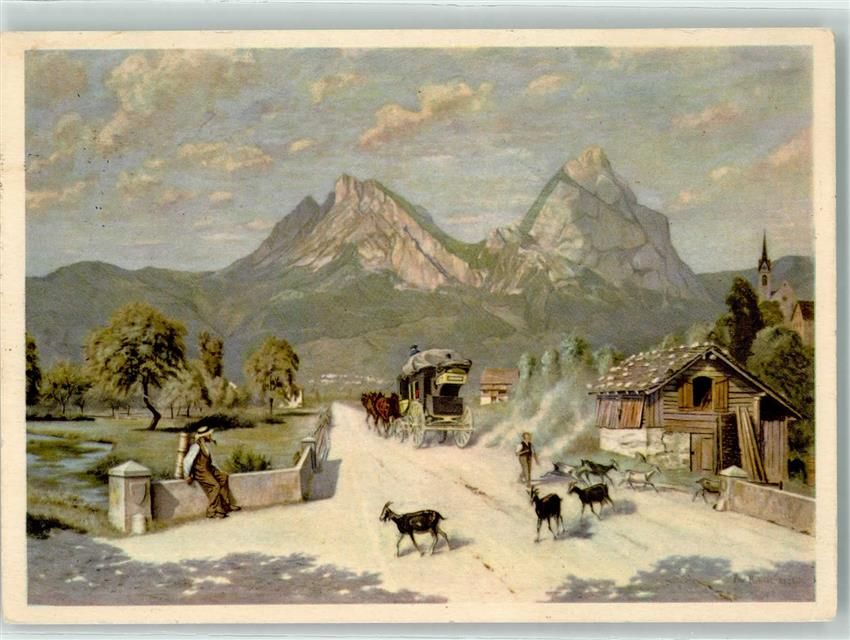 Turgi Ziegen Postkutsche Ort lt. Stempel Pro Infirmis Schweiz Künstlerkarte
