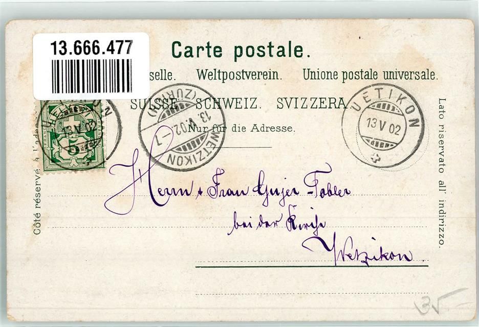 Uetikon am See Bahnhof Eisenbahn Kirche Bahnhof Schweiz 1902 Foto AK