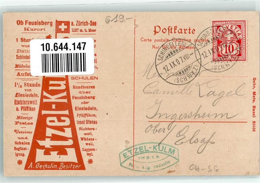 Ufenau Insel 1907 Lithographie Etzel Kulm