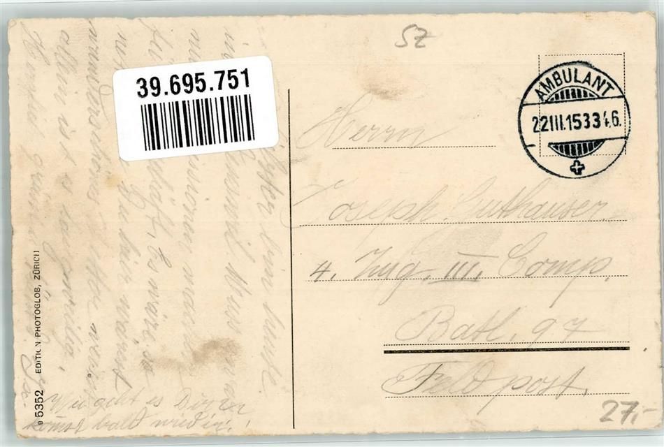 Ufenau Insel 1915 Gebrauchsspuren Zürichsee Bahnpost Zug 3346