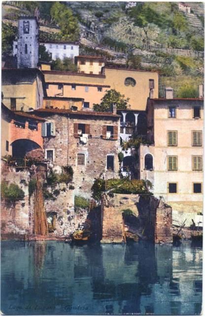 um 1910-20 - Gandria am Luganer See, Teil des Orts von See aus,E. Götz AKU1