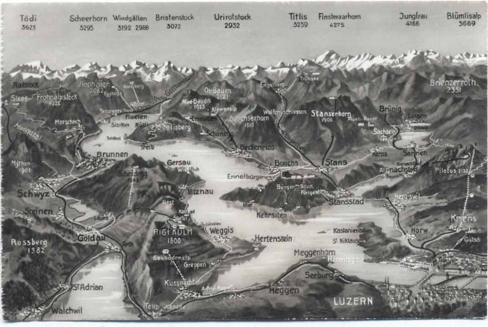 um 1940 - Landkarte, Weggis, Meggen, Stans, Buochs, Brunnen,Wehrli AG AKU1