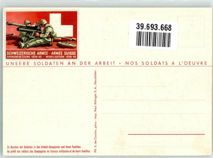 Unsere Soldaten an der Arbeit Grenzbesetzung 1939 Serie Militär Schweiz