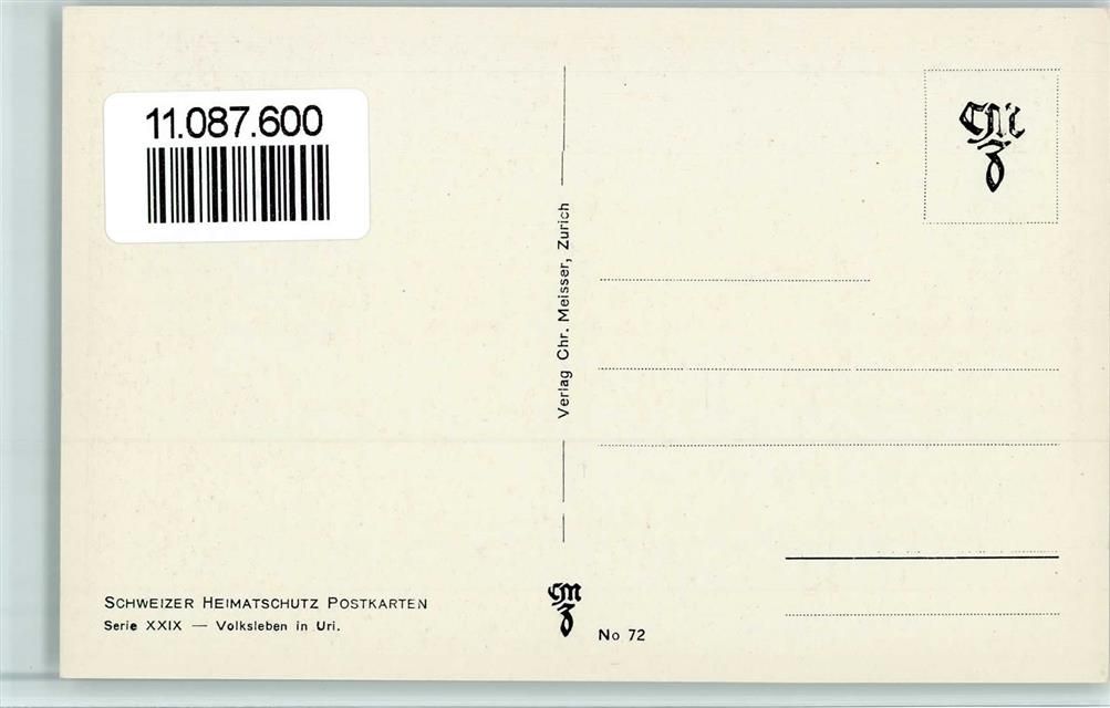 Uri-Rotstock, Schweizer Heimatschutz Postkarten Volksleben in Uri
