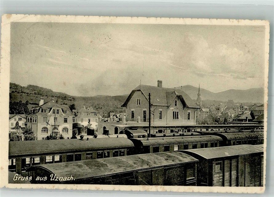Uznach Bahnhof Cafe Bahnpost Zug 3405 Bahnhof Schweiz 1917 Foto AK