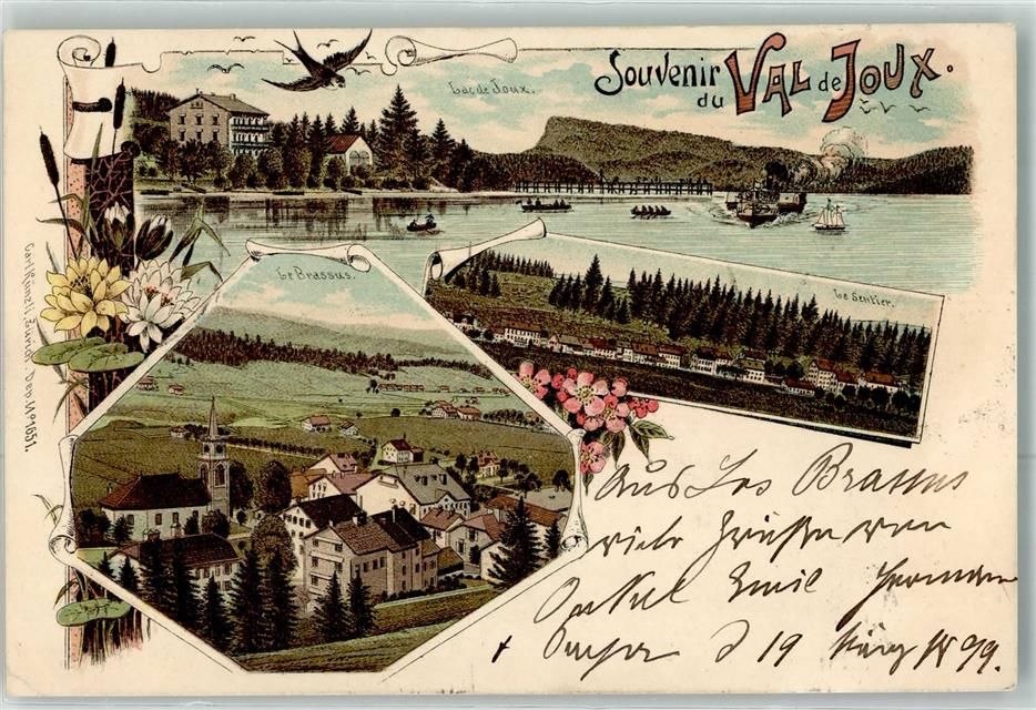 Vallée de Joux 1899 Lithographie Lac de Joux Le Brassus Le Sentier Verlag Künzli Nr 1651