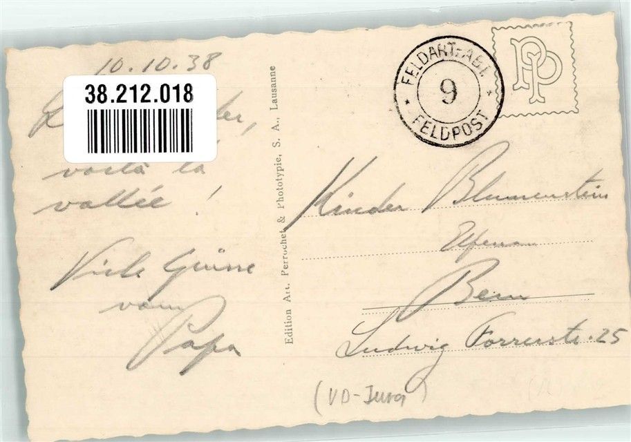 Vallée de Joux , Fliegeraufnahme Feldpost Feldart.Abt. 9