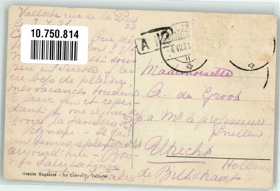 Vallorbe Bahnhof Bahnhof Schweiz 1921 Gebrauchsspuren