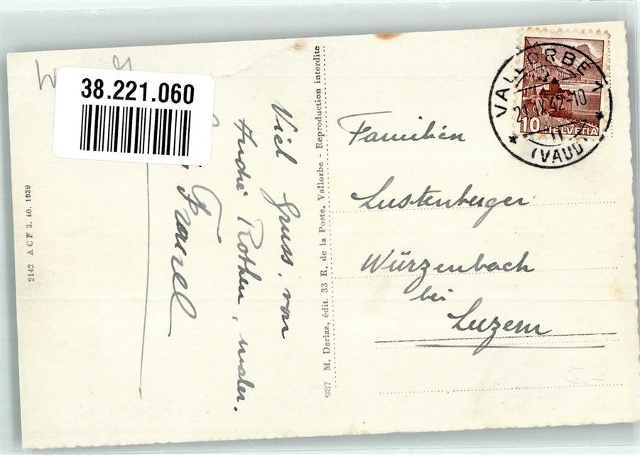 Vallorbe Bahnhof Fliegeraufnahme Bahnhof Schweiz 1942 Gebrauchsspuren