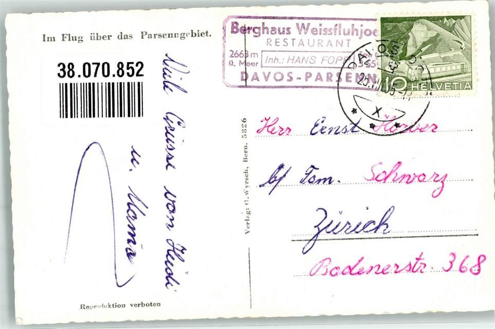 Weissfluhjoch 1955 Foto AK Fliegeraufnahme Parsenngebiet Hüttenstempel