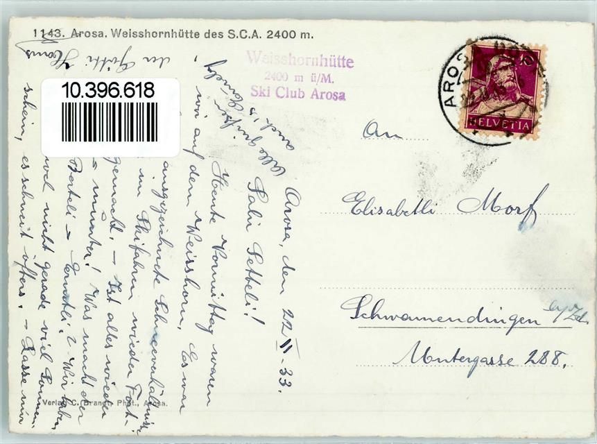 Weisshornhütte, Winter Hüttenstempel