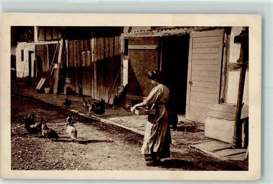 Werbung - Chocolat Klaus - Bäuerin beim Hühner füttern AK