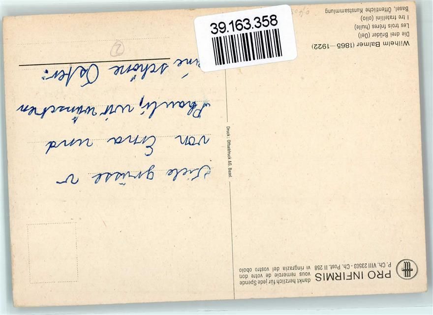 Wilhelm Balmer "Die drei Brüder" AK Pro Infirmis Schweiz Künstlerkarte