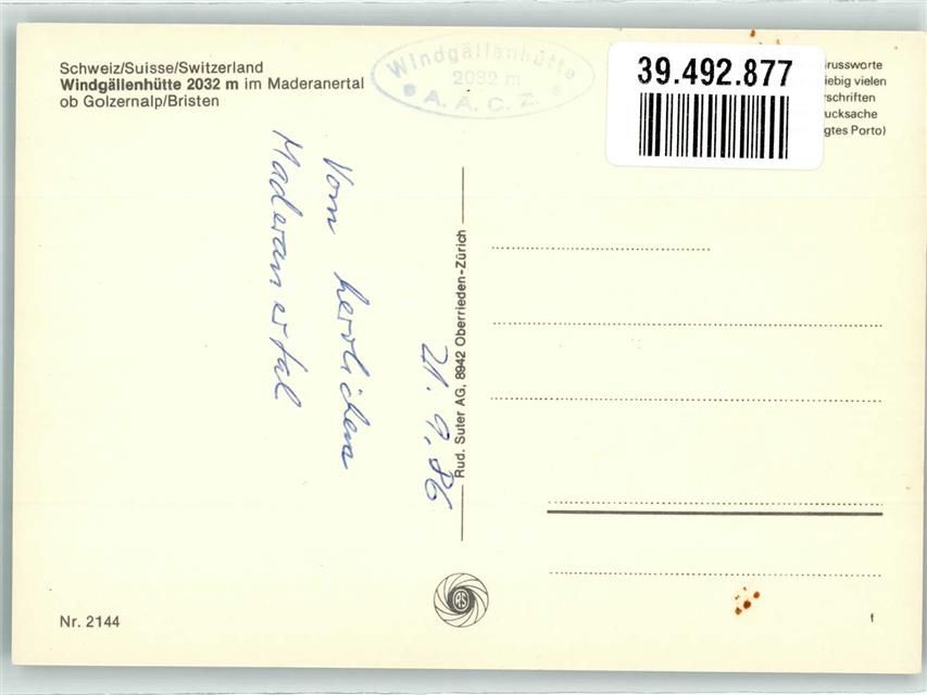 Windgällenhütte - Schwarz Stöckli Hüttenstempel