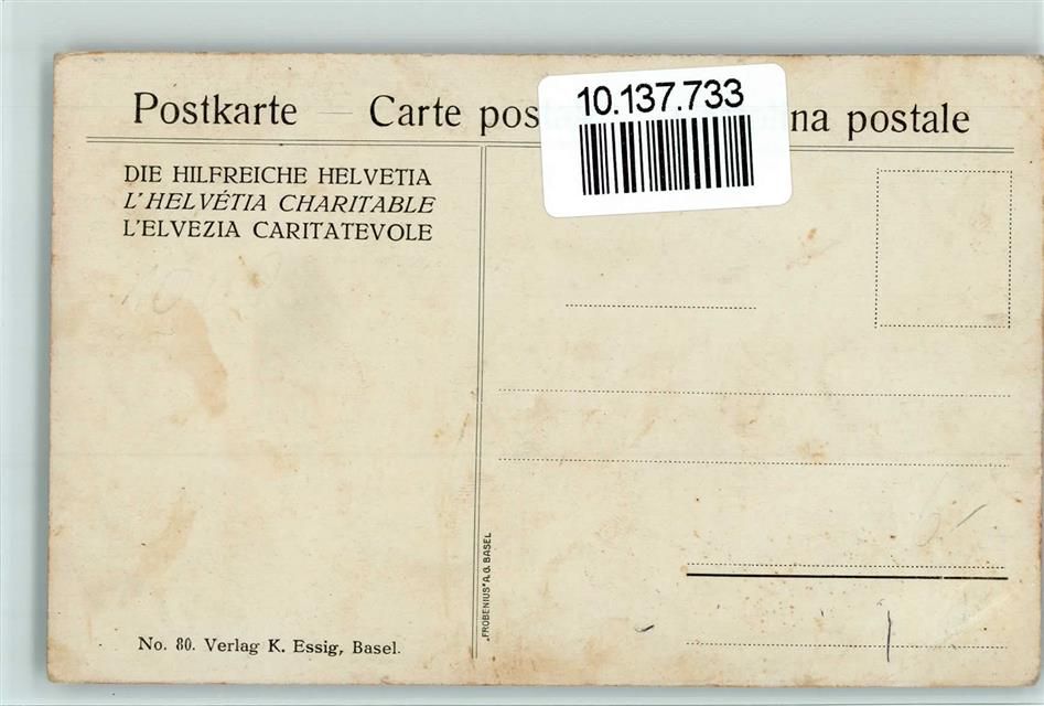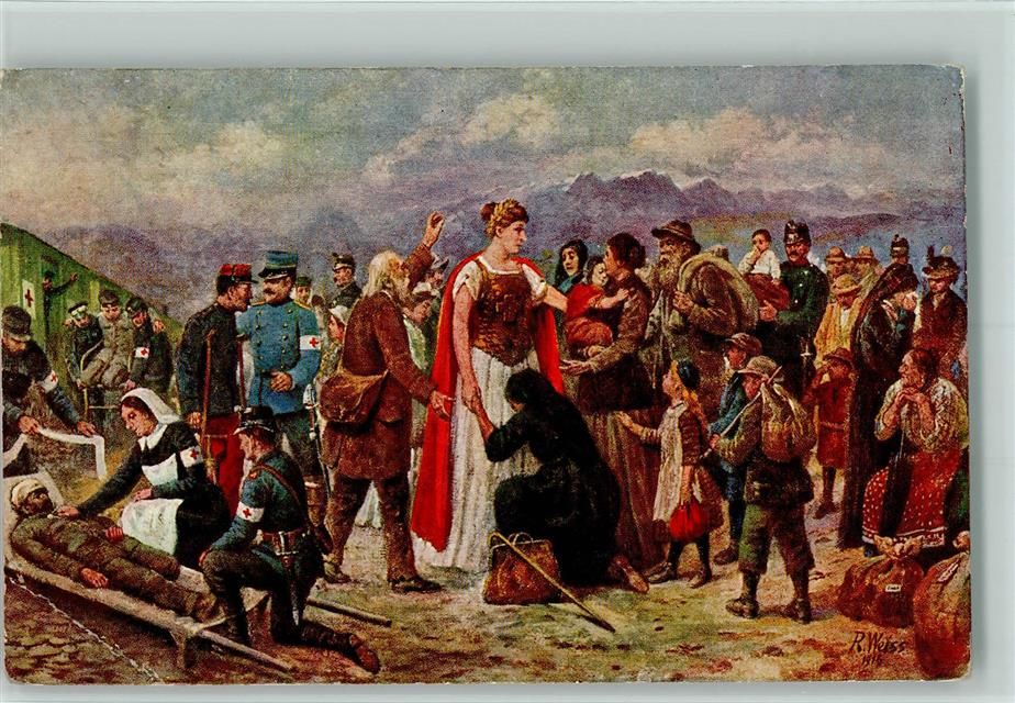 , WK I Die Hilfreiche Helvetia - Rotes Kreuz Flüchtlinge , sign Weiss