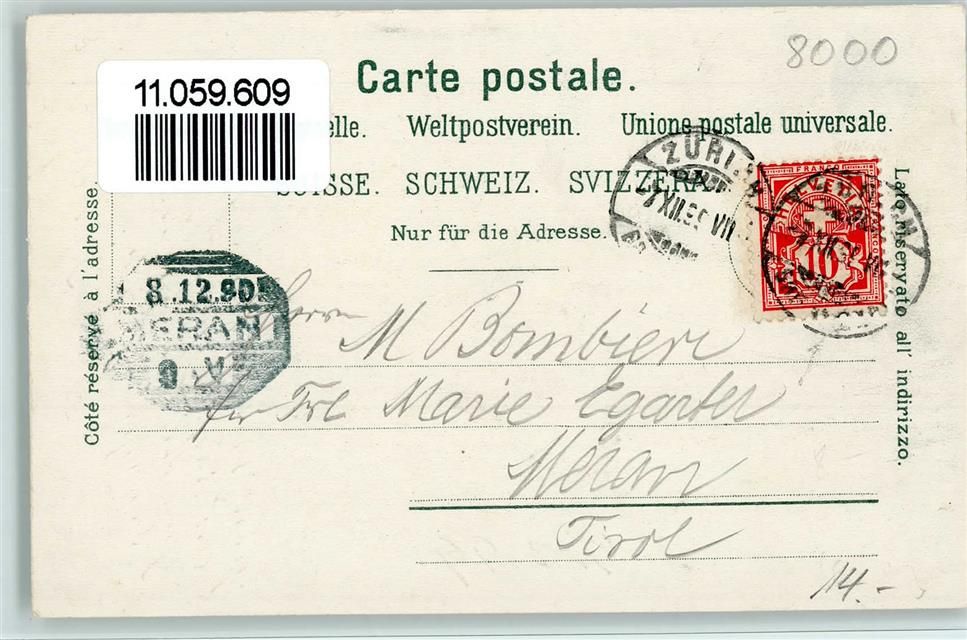 Zürich Bahnhofplatz Gruss aus Zürich Pferdekutschen Bahnhof Schweiz 1899