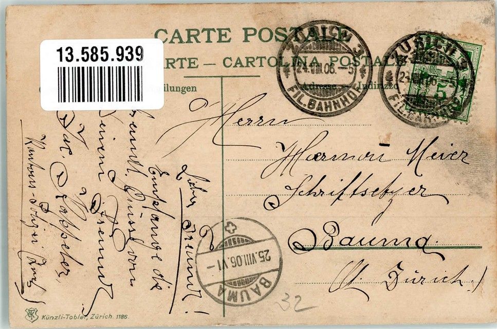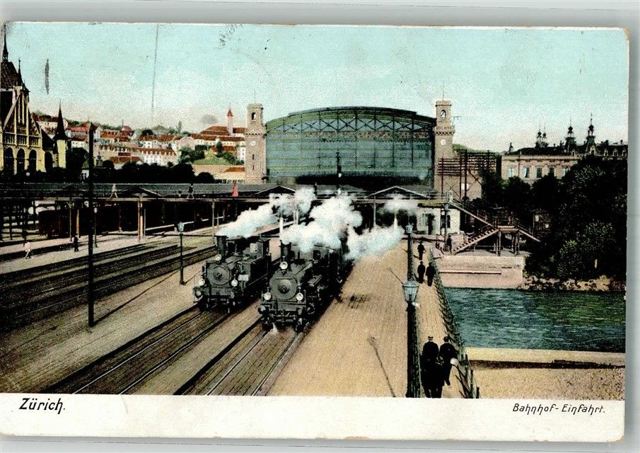 Zürich Eisenbahn Bahnhof Einfahrt Bahnhof Schweiz 1906 Foto AK