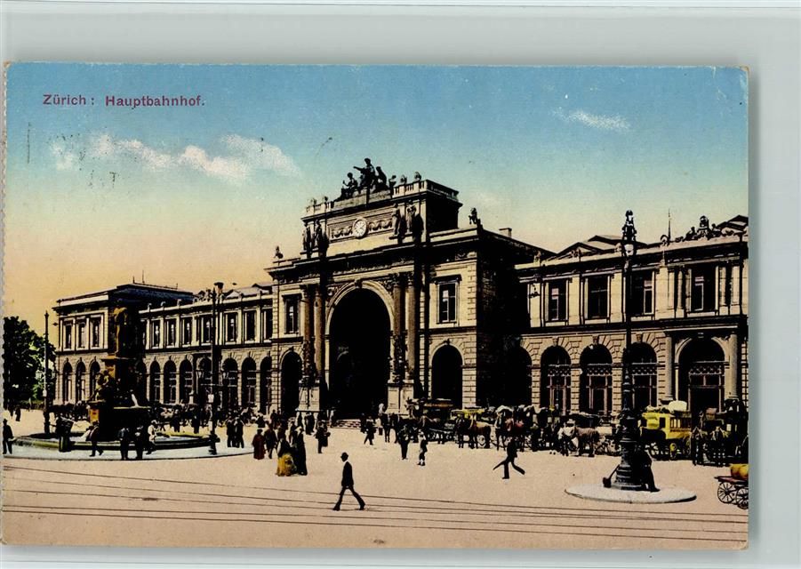Zürich Hauptbahnhof Pferdekutschen Feldpost Militärsache Bahnhof Schweiz