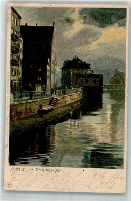 Zürich Rathaus-Quai Nr. 802 sign. Diemer, Zeno Künzli 1906 Lithographie
