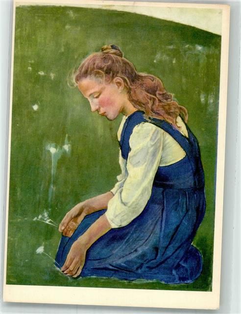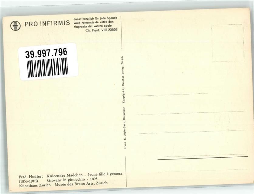 Zürich sign. Holder Fred. Knieendes Mädchen Kunsthaus Pro Infirmis Schweiz Künstlerkarte