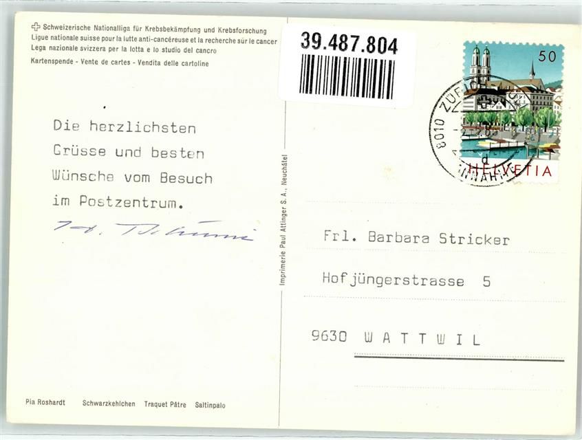 Zürich Vogel Schweizerische Nationalliga für Krebsbekämpfung Motiv Schweiz