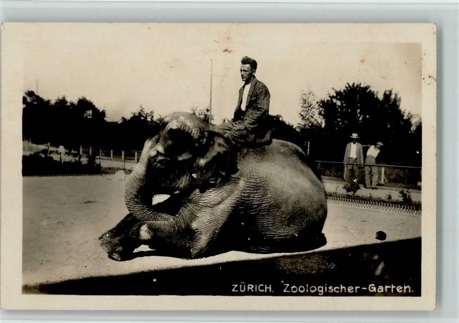 Zürich, Zoolog. Garten Mann auf dem Rücken eines Elefanten