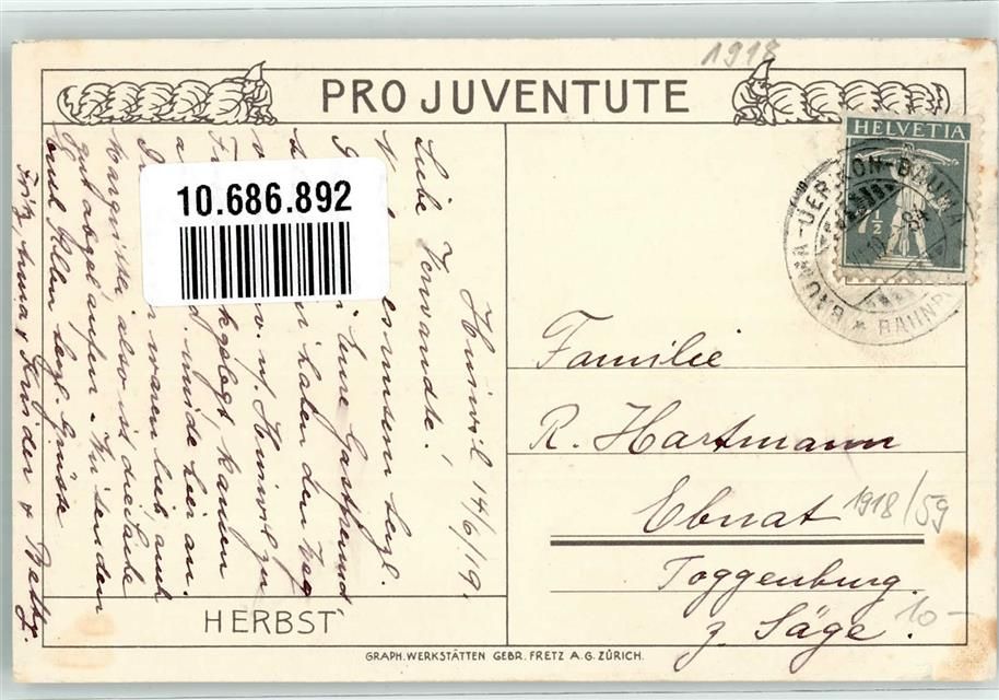 Zwerg sign. E. Kreidolf Herbst Pro Juventute Pro Juventute Schweiz Lithographie